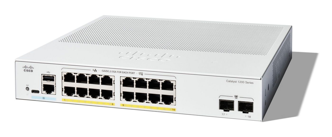 Cisco Catalyst 1200 C1200-16P-2G – Przełącznik L2 z 16x GE PoE i 2x 1G SFP